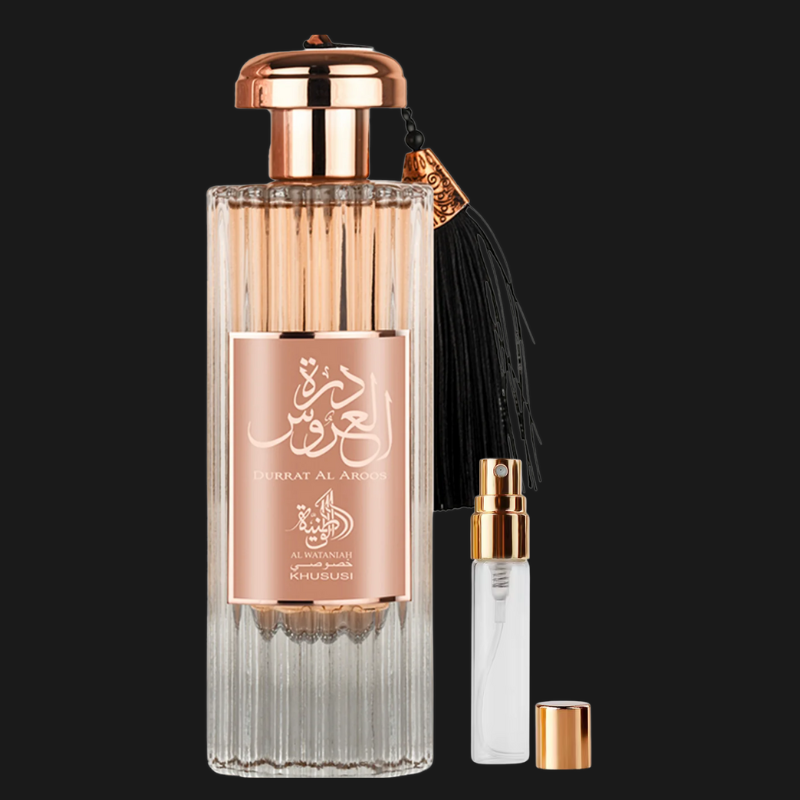 Durrat Al Aroos é uma Eau de Parfum feminina da Al Wataniah que oferece uma experiência olfativa sofisticada e envolvente. Esta fragrância oriental amadeirada combina notas quentes e especiadas com toques doces e amadeirados, criando uma composição elegante ideal para ocasiões especiais.Notas da Fragrância: