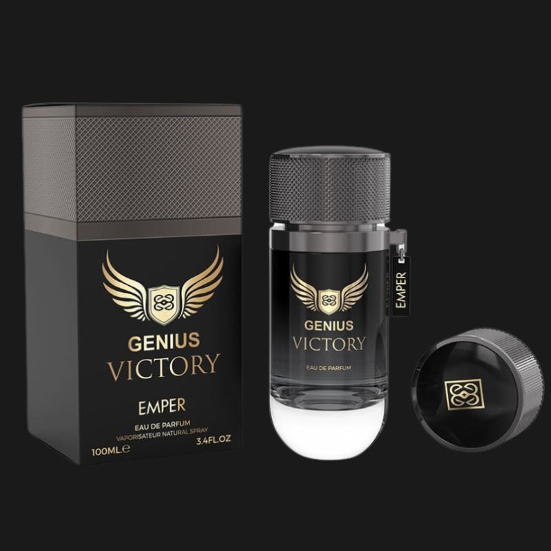 Unleash your bold side with Genius Victory, a fragrance that blends vibrant pink pepper and zesty lemon with a smooth heart of olibanum and lavender. The warm vanilla, tonka bean, and amber base create an irresistible, long-lasting allure