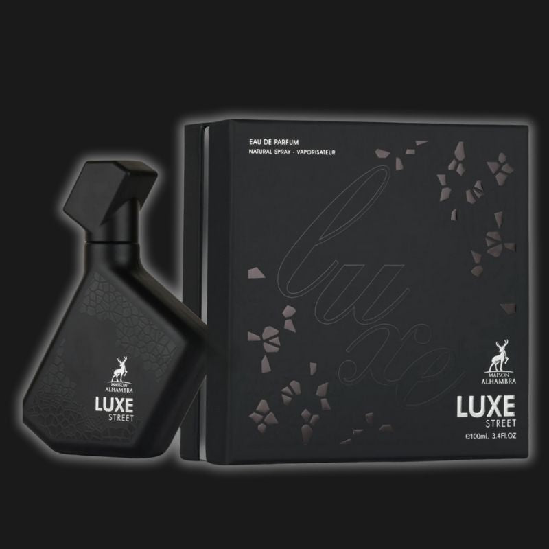 O frasco de 100ml acompanha o design sofisticado típico da Maison Alhambra, combinando elementos contemporâneos com detalhes luxuosos. Ideal como presente elegante, o Luxe Street reflete a personalidade de quem aprecia perfumes de alto padrão, exclusividade e a riqueza olfativa da tradição árabe, alinhando-se ao portfólio de fragrâncias de grandes maisons internacionais.
