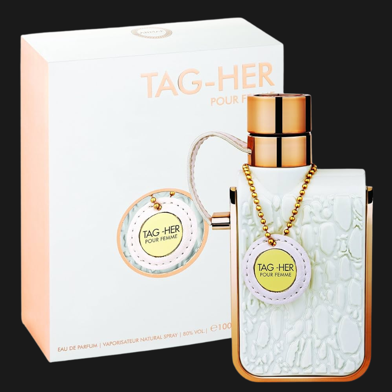 Tag Her é uma Eau de Parfum feminina da Armaf que combina elegância e modernidade em uma fragrância oriental floral irresistível. Com uma composição rica e envolvente, este perfume apresenta notas cítricas e picantes no topo, um coração floral delicado e uma base doce e gourmand. Ideal para mulheres que desejam exalar confiança e sofisticação em qualquer ocasião.