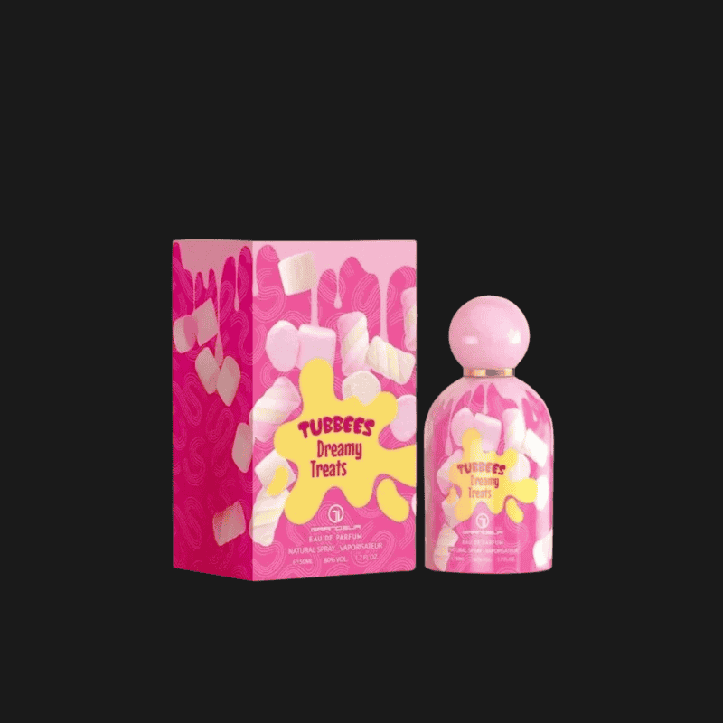 Descubra Tubbees Dreamy Treats Eau de Parfum Unissexo 50ml, uma fragrância encantadora que combina notas gourmand, florais e cremosas para criar uma experiência olfativa doce, sofisticada e acolhedora. Esta eau de parfum, importada de Dubai pela marca Grandeur, é ideal para quem busca um perfume unissexo que une elegância e diversão, perfeito para todas as idades, incluindo crianças a partir dos 3 anos.